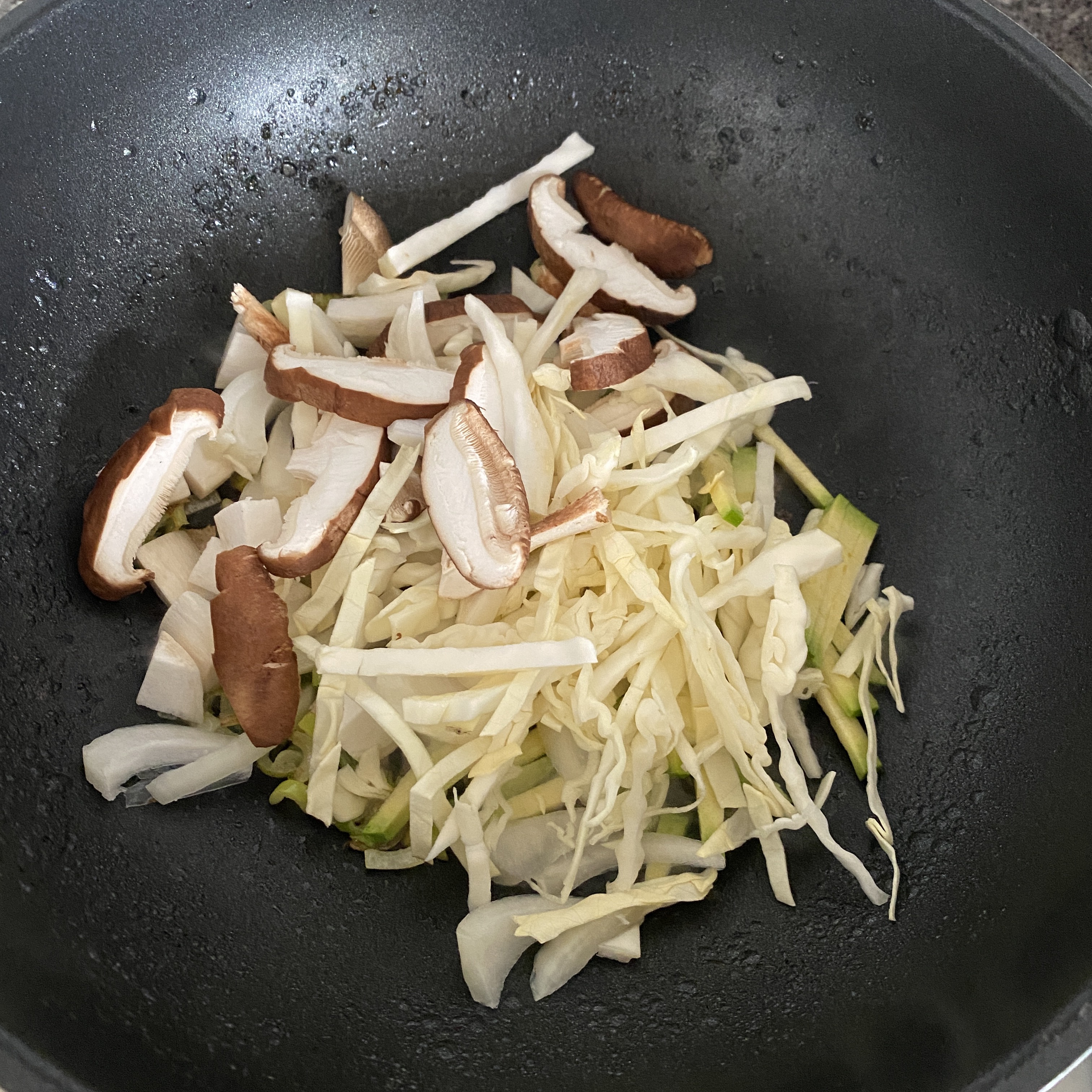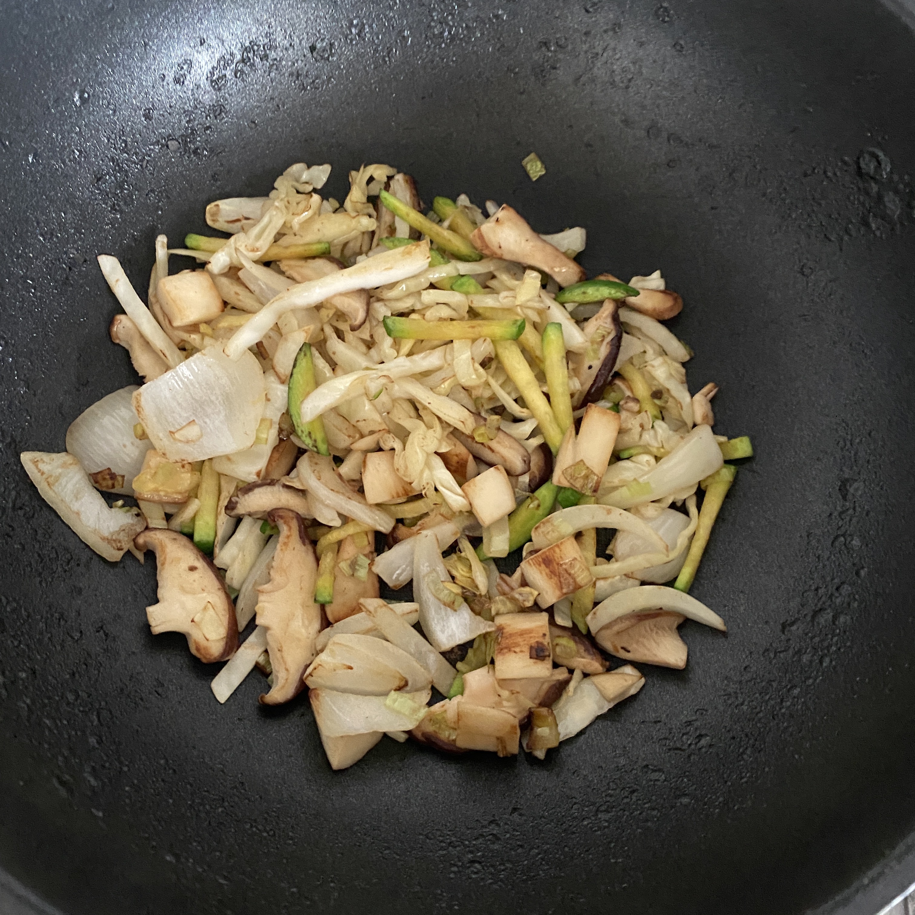 채소를 모두 넣고 센불로 빠르게 볶는다.