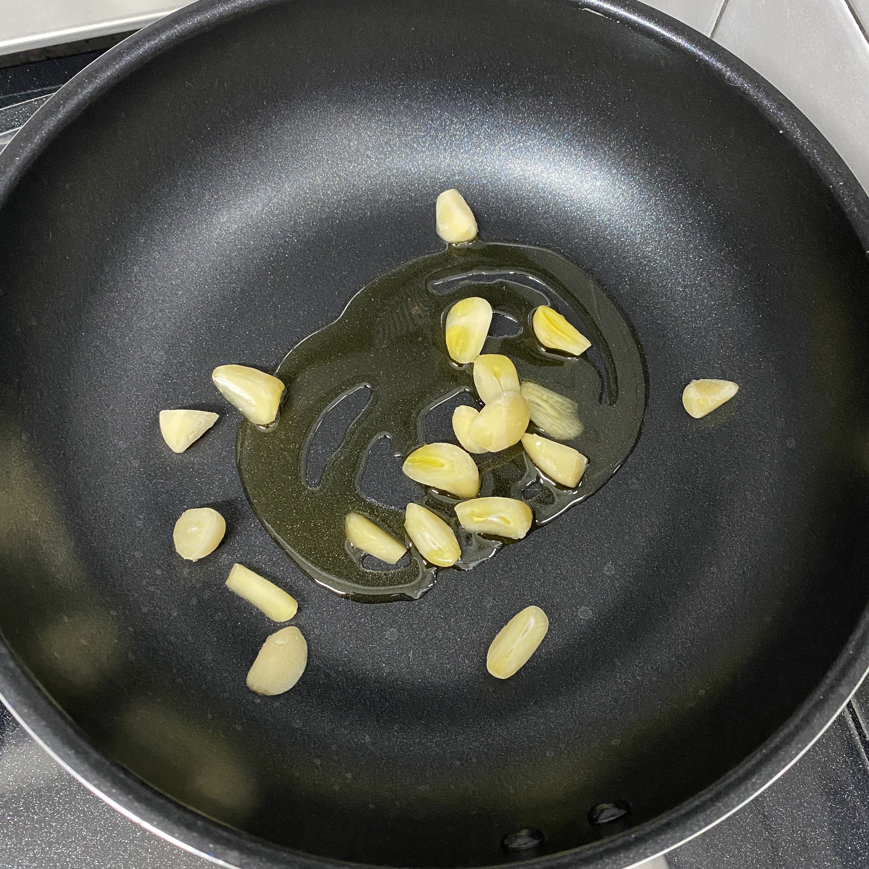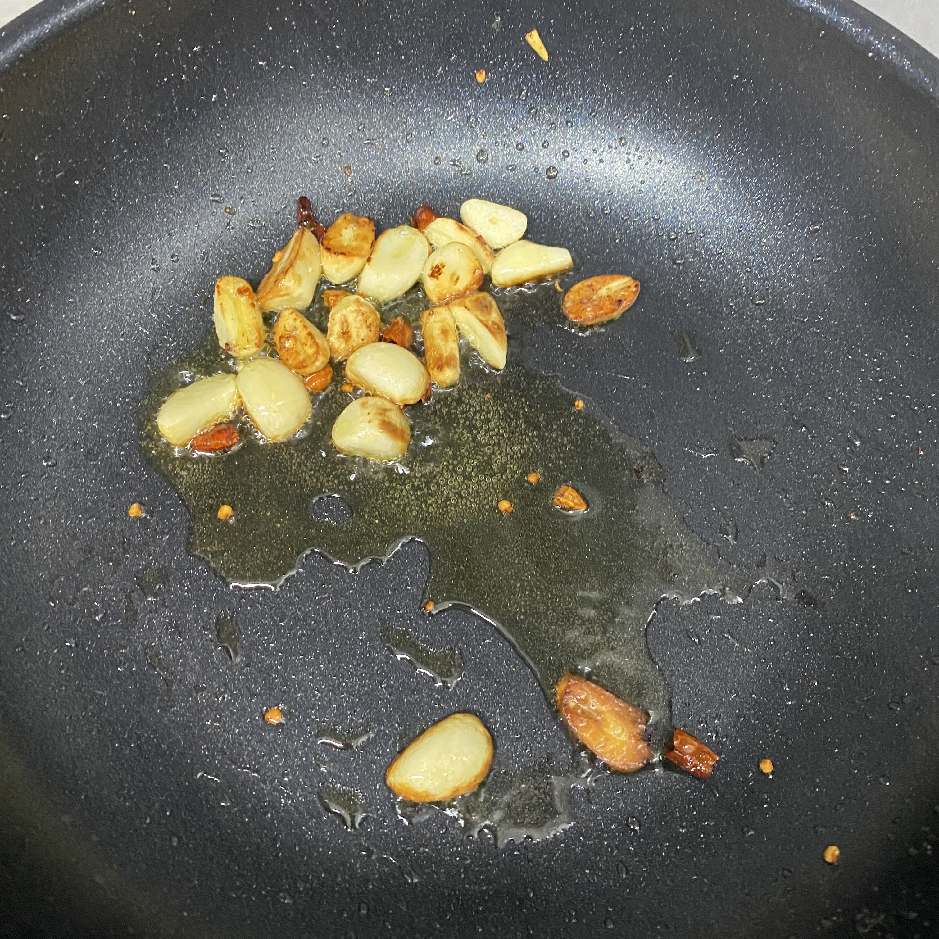올리브유를 두른 팬에 마늘과 페퍼론치노를 넣고