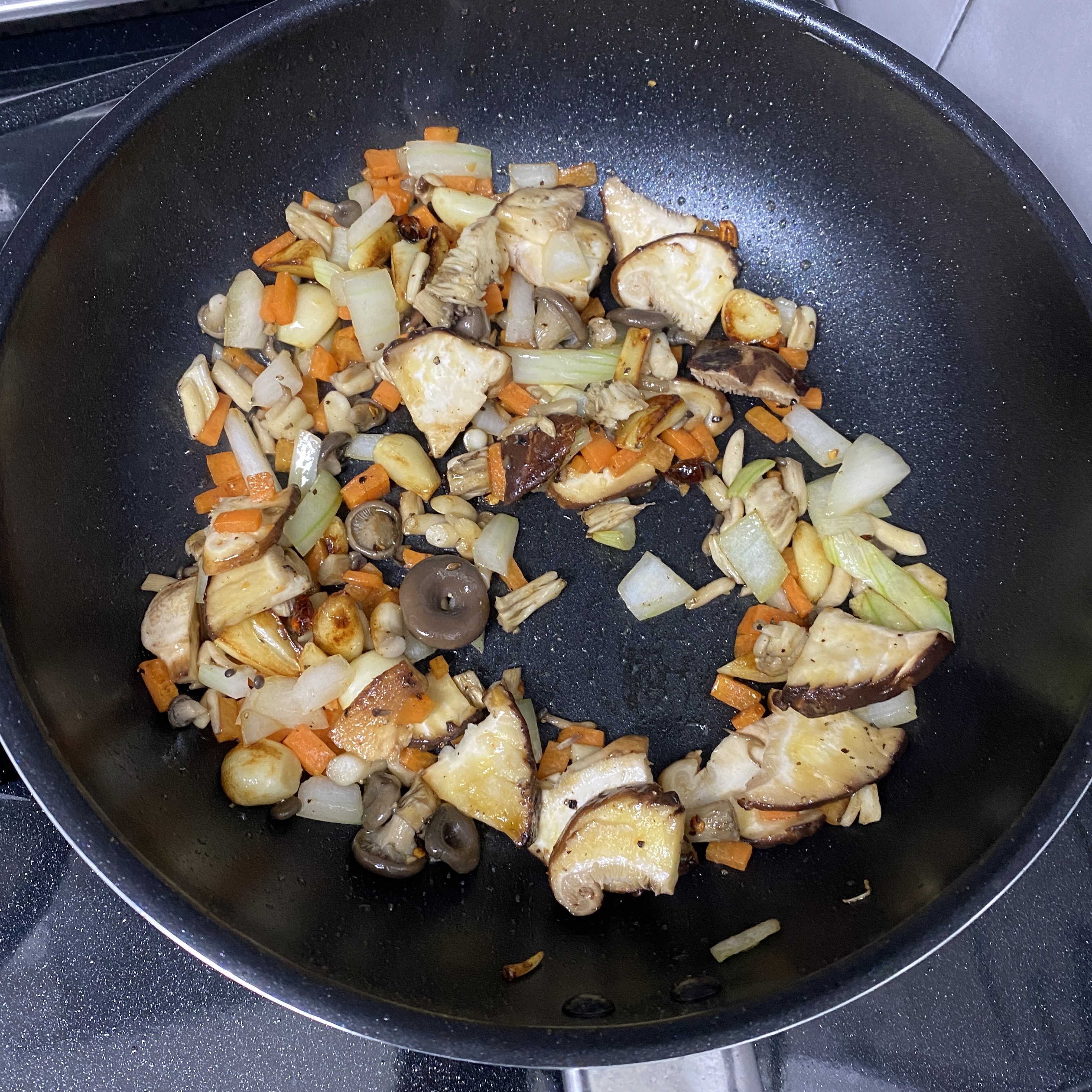 마늘이 노릇노릇 익으면 썰어둔 야채를